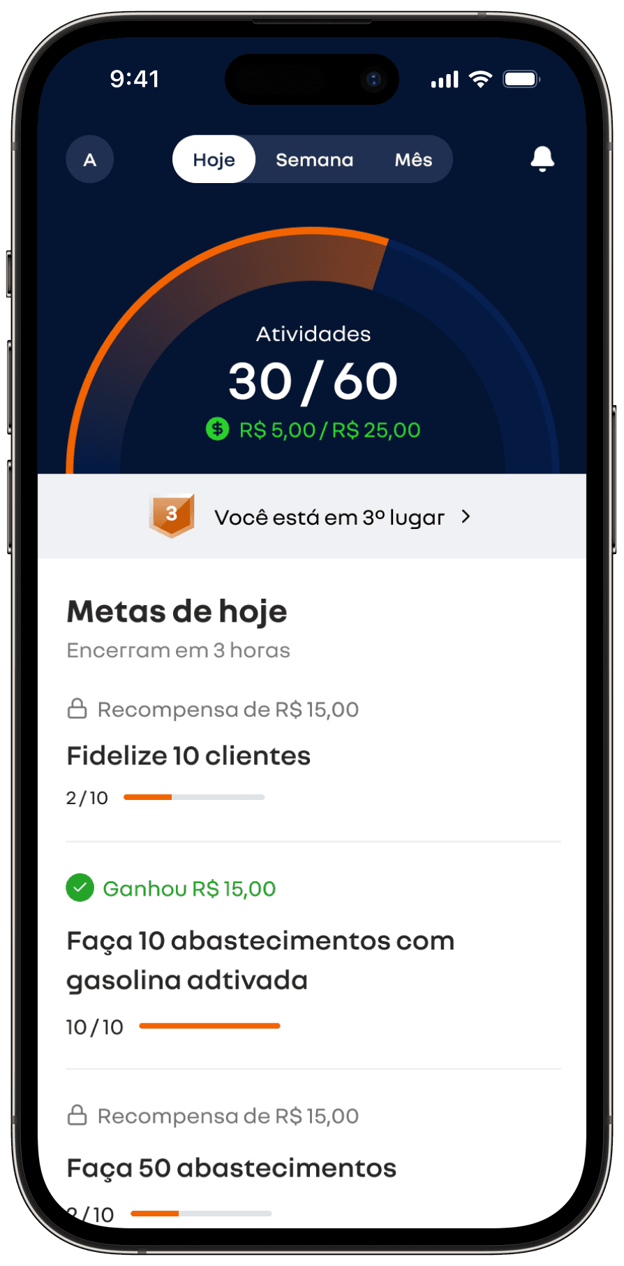 Seu frentista acompanha em tempo real suas metas, recompensas e muito mais.